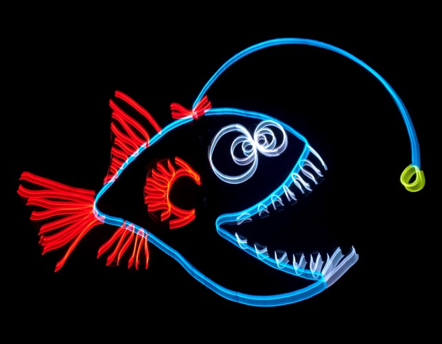 Все куклы в представлении светятся сами. Для этого использованы две технологии - светодиоды и электролюминесцентные провода. Казалось бы, можно сделать театральную куклу и закрепить на ней источники света, вот и получится светящаяся кукла. Но в этом представлении принцип создания кукол иной. Источником вдохновения для создания образов являются сами светодиоды и электролюминесцентные провода, и они же являются конструктивной основой самих кукол. Как делать традиционных кукол известно уже давно. Но для создания кукол из этих материалов было необходимо применить абсолютно новые технологии и изобрести новые конструкторские решения, которые нельзя найти ни в библиотеке, ни в интернете. Конструкция каждой куклы в представлении уникальна.