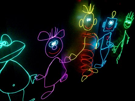 technique - LED and El-wire string marionettes, giant, hand and experimental puppets